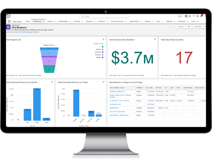 Elements combines industry-specific features with trusted core CRM concepts and workflows. As a Salesforce AppExchange Partner, SS&C offers integration with a large selection of AppExchange solutions popular among advisors via our Elements CRM solution.